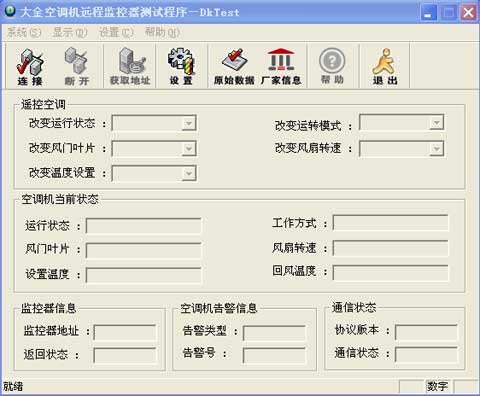 DJSI-1大金空調(diào)機(jī)監(jiān)控器是為實(shí)現(xiàn)大金空調(diào)機(jī)與計(jì)算機(jī)監(jiān)控功能而設(shè)計(jì)的專門化部件,該監(jiān)控器向用戶提供一個(gè)計(jì)算機(jī)監(jiān)控接口(RS232/RS485),通過(guò)該監(jiān)控器用戶可獲取空調(diào)機(jī)的數(shù)據(jù)控制空調(diào)機(jī)。通過(guò)建設(shè)空調(diào)機(jī)集中監(jiān)控系統(tǒng),用戶可對(duì)空調(diào)機(jī)進(jìn)行四遙(遙信、遙測(cè)、遙控、遙調(diào)),實(shí)現(xiàn)遠(yuǎn)程維護(hù)。本軟件的主要功能和主界面如下。
